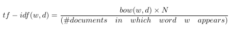 就是所谓的逆文件频率。如果一个单词出现在许多文档中,则其逆文档频率接近1。如果单词出现在较少文档中,则逆文档频率要高得多。